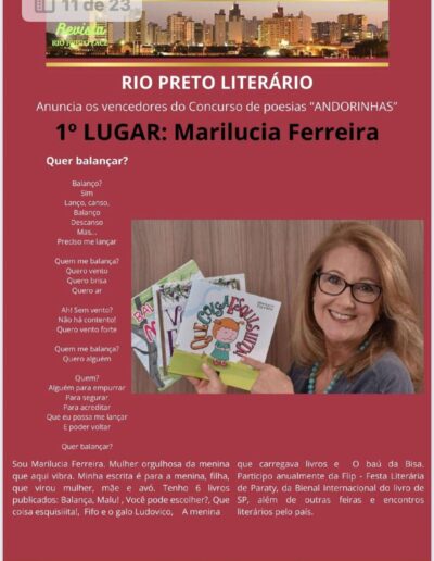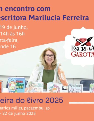Marilucia Ferreira é autora de livros infantis que encantam leitores de todas a idades. Suas histórias nascem do diálogo com as crianças e exploram temas como imaginação, criatividade, amizade e valores humanos. Com uma escrita leve e sensível, convida pequenos leitores a descobrirem o prazer da leitura por meio de brincadeiras e emoções.